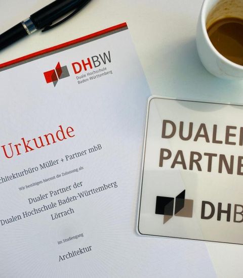 Als Dualer Partner der DHBW Lörrach bieten wir als eines von mehr als 750 Unternehmen Deutschlands, Frankreichs und der Schweiz die Möglichkeit einer praxisnahen Ausbildung, welche mit einem von der Architektenkammer anerkannten Bachelor- oder Masterabschluss im Fach Architektur endet. Während der Studienzeit über sieben Semester betreuen wir Studierende in den Praxisphasen individuell in unserem Unternehmen im dreimonatigen Wechsel mit den Theoriephasen an der Hochschule und tragen damit aktiv zur Ausbildung der Fachkräfte von Morgen bei.
