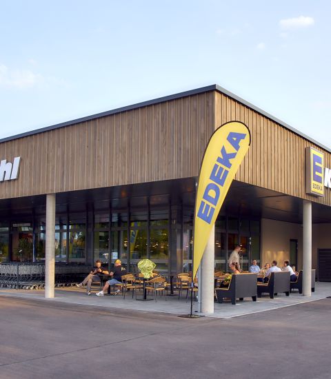 Mit dem Neubau des EDEKA Kühl entsteht in Ihringen ein moderner Nahversorger und ein neuer Mittelpunkt für die Gemeinde. Die klare Bauform mit Fassade aus regionaler Weißtanne und begrünten Elementen knüpft an die Weinbautradition des Kaiserstuhls an und setzt einen städtebaulichen Akzent.