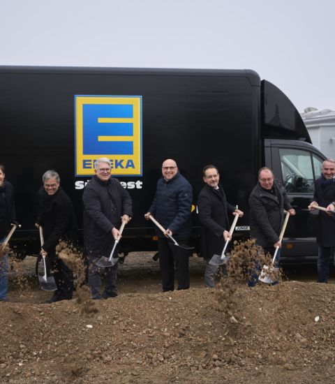 Mit dem Spatenstich am Mittwoch, 22. Januar 2025, starteten die EDEKA-Kaufleute Uwe, Gerd und Dr. Maximilian Kohler in Anwesenheit von Oberbürgermeister Stefan Schlatterer symbolisch die Bauarbeiten für den neuen EDEKA-Markt in Emmendingen-Kollmarsreute. Die Eröffnung des neuen Markts ist zum Ende dieses Jahres geplant.