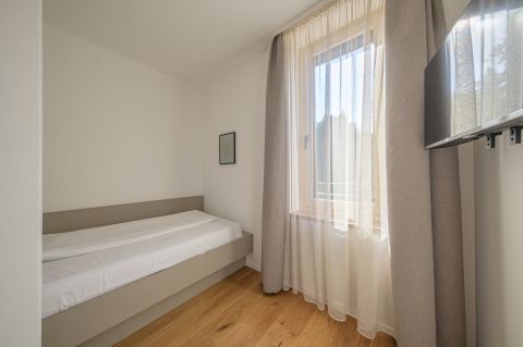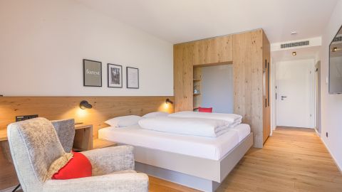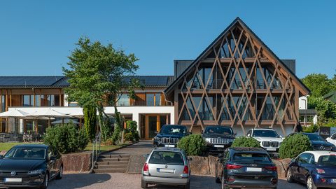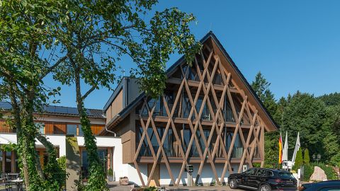 Im Rahmen der Erweiterung des Hotels ‚Die Alm‘ in Ödsbach entstand ein architektonisches Konzept, das Tradition und Moderne auf harmonische Weise verbindet. Durch einen Teilabbruch und anschließenden Neubau wurden drei neue, atmosphärische Hotelzimmer, ein Personalbereich sowie ein Spielzimmer für die Gäste des hoteleigenen Restaurants geschaffen. Der Neubau erfolgte in Holzbauweise, die sich sowohl in der Konstruktion als auch im Innenraum der Hotelzimmer wiederfindet. Auch das fassadenbildende Holzornament interpretiert die klassische, lokale Fachwerkbauweise neu. So wird traditionelles Handwerk in einen zeitgemäßen Kontext überführt, wodurch eine Brücke zwischen regionaler Bautradition und modernem Hoteldesign geschlagen wird. Großzügige Fensteröffnungen und die Ausrichtung des Gebäudes Rahmen den Blick aus den Hotelzimmern in beeindruckender Weise, richtet sich auf das weite Panorama des Schwarzwalds und setzt den umliegenden Wald sowie die charakteristischen Weiten der Region gekonnt in Szene.