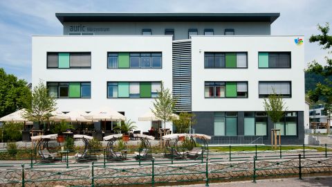 Die Patienten profitieren von einem umfassenden Leistungsangebot, von kurzen Wegen, Barrierefreiheit und guten Parkmöglichkeiten; in einer Tiefgarage wurden knapp 100 Stellplätze geschaffen. Die Attraktivität des Areals konnte durch die Anpassung des Mühlbachlaufs und den angeschlossenen Aufenthaltsflächen stark gesteigert werden. Die gewählte Fassadenoberfläche spiegelt den Nutzen des Gebäudes wider und verleiht dem neu angelegten Quartier eine zeitgemäße Optik.