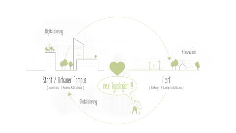 Architektonisches Ziel ist es, neue Typologien zu entwickeln, die nicht nur den Innenraum, sondern auch den Außenraum an die lokale Kulturlandschaft anpassen, durch flexible Räume ein Miteinander zu schaffen, das sowohl Arbeit als auch Erholung ermöglicht. Dabei wird die bestehende Dorfstruktur respektiert und weiterentwickelt. Der Masterplan ist adaptiv und reagiert auf zukünftige gesellschaftliche Veränderungen. Das erste Gebäude, das Headquarter, fügt sich, basierend auf den regionalen Tabakscheunen, harmonisch in die Umgebung ein. Die Architektur aus Vollholz unterstreicht die Werte des Projekts und schafft einen authentischen Bezug zur Region.