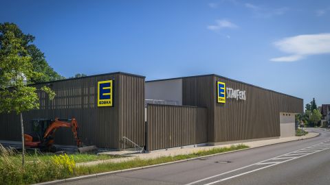 Ein zeitgemäßer Nahversorger als architektonisches Entree zur Gemeinde. Nach dem Rückbau des bisherigen Markts entstand in zentraler Lage von Wäschenbeuren ein neuer EDEKA-Markt mit rund 1.390 m² Verkaufsfläche und integrierten Räumen der Kreissparkasse. Der Neubau vereint funktionale Effizienz mit einer qualitätsvollen, ortsbildprägenden Architektur. Mit dem Neubau des EDEKA-Marktes Staufens wurde in Wäschenbeuren ein markanter städtebaulicher Akzent gesetzt. Der neue Markt ersetzt den vorherigen Bestandsbau und öffnet sich als zeitgemäßer Versorgungs- und Begegnungsort der Gemeinde. Die klare, kompakte Bauform reagiert präzise auf das Grundstück, das zwischen Göppingen Straße und Talstraße liegt und in seiner Erschließung vollständig neu organisiert wurde – inklusive Bushaltestellen, Querungshilfe und Zufahrt.