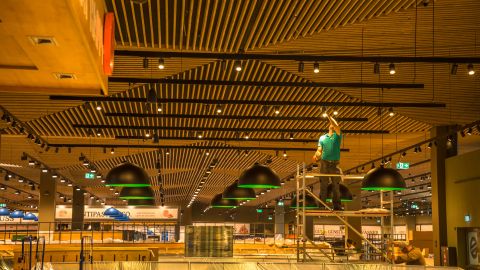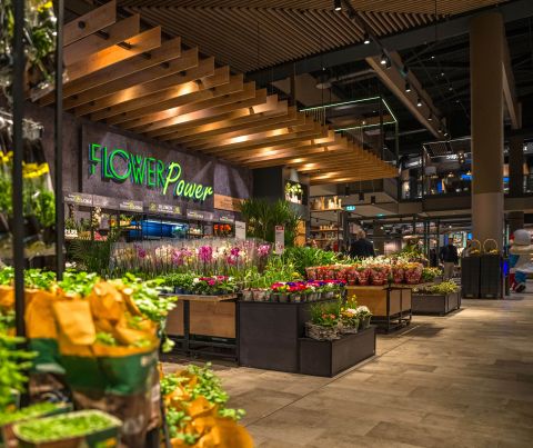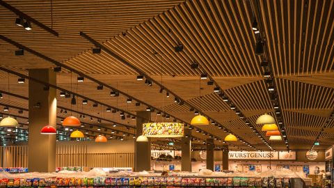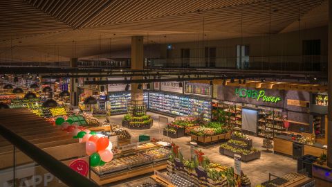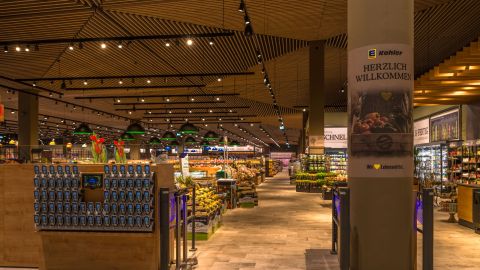 Die Energieeffizienz des Gebäudes liegt 25 % unter heutigen Standards. Die gesamte Heiz- und Kühlenergie wird fossilfrei erzeugt und die auf dem Dach noch zu installierende Photovoltaikanlage mit 800 kWp versorgt zukünftig das Gebäude mit sauberem Strom. Die gewählte Betonkernaktivierung ermöglicht eine besonders effiziente Temperierung des Marktes. Das gesamte Gebäude wird mit Luft-Wasser-Wärmepumpen betrieben und die Abwärme mittels Wärmerückgewinnung genutzt. Nachhaltig wird mit regionalen Pflanzen begrünt und das anfallende Regenwasser genutzt.