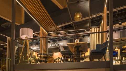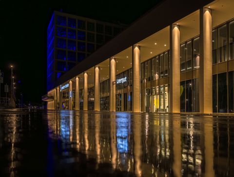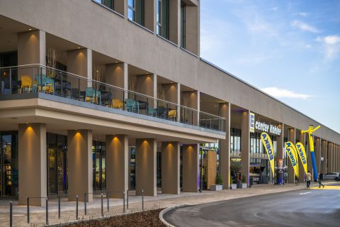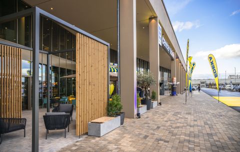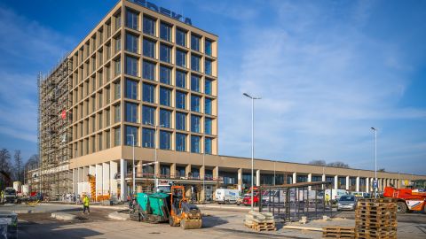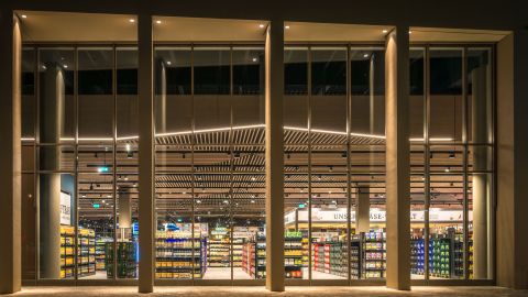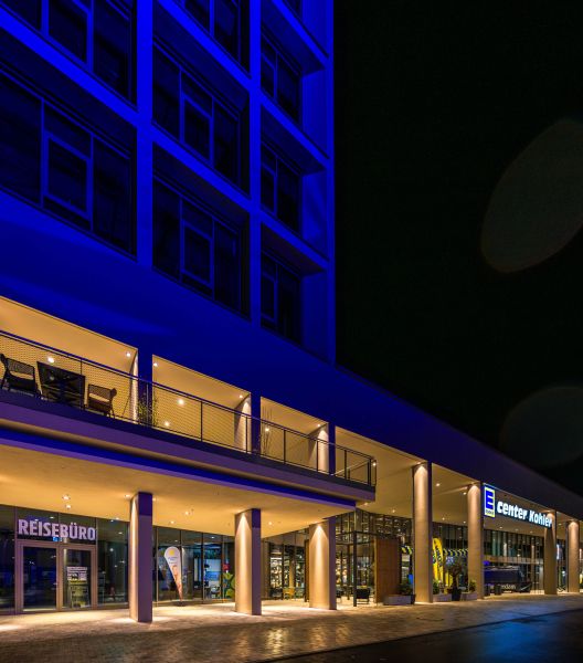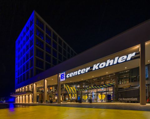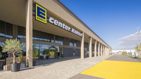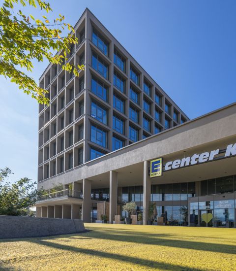 In nur 24 Monaten konnte das neue Wahrzeichen der EDEKA Südwest auf einer Fläche von 23.000m² Nutzfläche (rund 4,5 Fußballfelder) und einem Bauvolumen von 180.000m³ durch gut abgestimmte Leistungen aller Beteiligten errichtet werden. Die Leitidee für dieses neue Einkaufs- und Dienstleistungszentrum war es, die Werte der EDEKA Südwest architektonisch zu formulieren. Ein Gebäude, das die Einheit von Einzelhandel und operativem Geschäft sichtbar und begreifbar macht, den Genossenschaftsgedanken fördert und zugleich die Themen Regionalität und Nachhaltigkeit erlebbar macht. Die klare Struktur der Fassade, mit den vertikal ausgerichteten Stützen und der wiederholten Gliederung in den oberen Etagen, verleiht dem Gebäude eine bodenständige Ausstrahlung. Gleichzeitig strahlt es eine hochwertige, repräsentative Wirkung aus – ideal auf die Werte der EDEKA Südwest abgestimmt. Ein besonders markantes Element des Projekts ist die gefaltete Holzdecke im Marktbereich die die Transformation traditionsreicher Ortenauer Handwerkskunst in die moderne, digitale Welt symbolisiert. Die großzügigen Glasfassaden bieten Sichtbeziehungen von innen nach außen und umgekehrt und ermöglichen einen Blick in das benachbarte Vogelschutzgebiet. Um den Vogelschutz zu gewährleisten, wurden 170.000 reflektierende Punkte in die Fassade integriert.