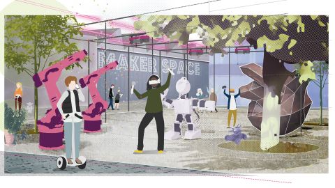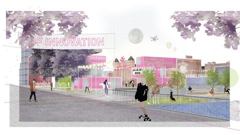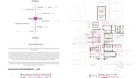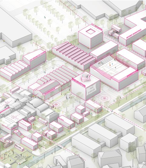 Der Schlachthof dient dabei als zentraler „Nukleus“, der verschiedene Phasen der Unternehmensentwicklung unterstützt – von der Ideenfindung bis zur Realisierung. Wir schaffen flexible Zonen für Start-ups, in denen Unternehmen wachsen können, ohne den Raum zu verlassen, wenn sie erfolgreich sind. Der städtebauliche Ansatz fördert Interaktivität, indem er Verkehrsinfrastruktur und öffentliche Räume so gestaltet, dass sie den Austausch zwischen den Nutzern intensivieren. Durch eine hohe Dichte und vielfältige Nutzungen entsteht ein lebendiges, heterogenes Quartier, das sich organisch in die Stadtstruktur einfügt. Das Quartier fördert Kreativität und Innovation und bietet Raum für unterschiedliche Entwicklungsgeschwindigkeiten und -typen.