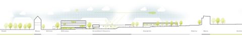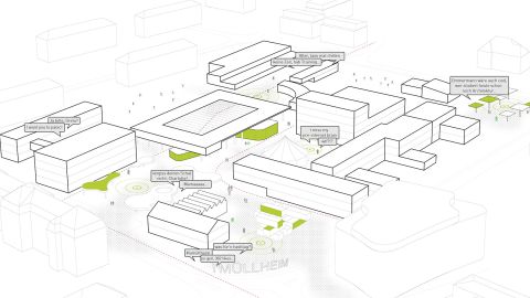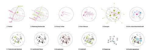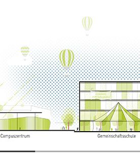 Die städtebauliche Planung setzt auf eine klare Adressbildung und eine starke Präsenz an den Schnittpunkten der Goethestraße und Schwarzwaldstraße. Ein „Trichter“-Prinzip öffnet den Campus zur Stadt, während eine gezielte Gliederung der Raumstruktur die Orientierung erleichtert. Die Architektur basiert auf einem flexiblen Punktraster und erlaubt temporäre sowie dauerhafte Entwicklungen. Die Landschaftsarchitektur fördert das Umherstreifen und die Integration von bestehenden Bäumen. Das Konzept sieht eine Etappierung vor, beginnend mit den grundlegenden Baukörpern und einer späteren Erweiterung, die auch Raum für zukünftige Entwicklungen lässt.