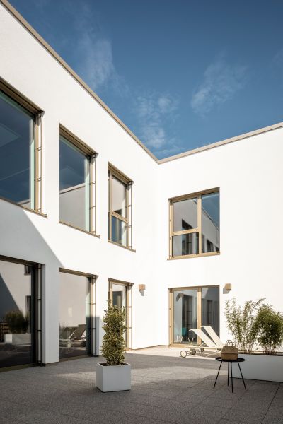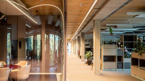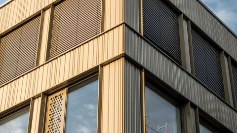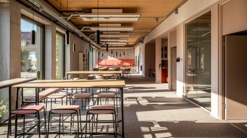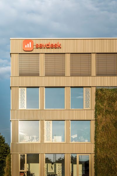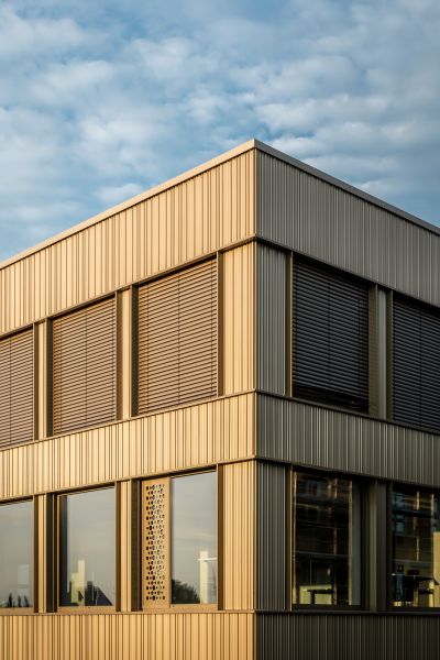 Außerdem sollte sowohl ökologische als auch ökonomische Nachhaltigkeit den Entwurf prägen. Das Gebäude erreicht den KfW 40 EE-Standard mit dem Einsatz energieneutraler Technik wie Fernwärme und Photovoltaik. Die gewählte Holzhybridkonstruktion und die Verwendung nachwachsender und recycelter Materialien wie Holz und Aluminium unterstreichen den ökologischen Anspruch. Neben der Flexibilität sichern lange Haltbarkeit und geringe Betriebskosten die ökonomische Nachhaltigkeit. Ein größtmöglicher regionaler Bezug konnte durch den Einsatz lokaler Handwerker und Materialien erreicht werden. Die Architektur verfolgt eine zurückhaltende Ästhetik, die nachhaltiges Bauen mit einer langfristigen Vision verbindet.