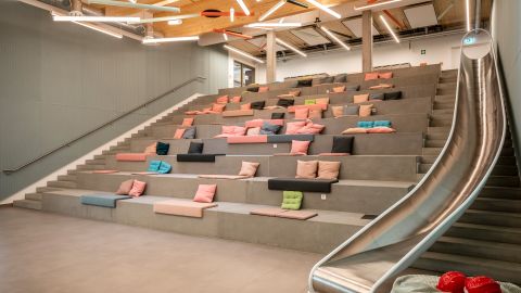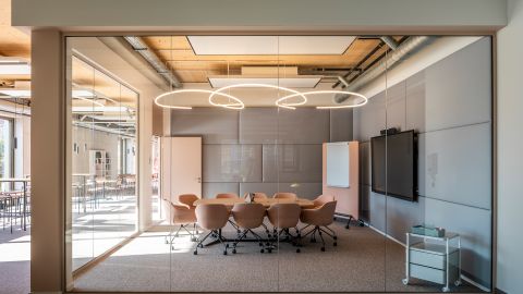 Die Arbeitsräume von sevdesk zeichnen sich durch zwei Hauptmerkmale aus: schnelle Wachstumsdynamik und Flexibilität. Um diese Herausforderungen zu bewältigen, setzten wir auf das „Cluboffice“-Prinzip, bei dem hauptsächlich verschiedene Zonen für individuelle Nutzungen und nur wenige feste Arbeitsplätze existieren. Dies bietet größtmögliche Flexibilität, fördert die Kommunikation und Zusammenarbeit und ermöglicht zugleich die Integration von Remote-Mitarbeitern.
