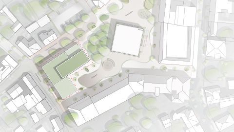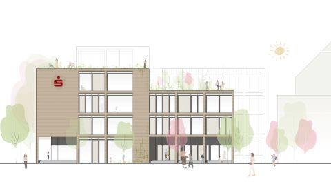Der Entwurf für die Sparkasse Achern versteht sich als zukunftsfähiger Hybrid, der das Konzept von Banking im öffentlichen Raum neu definiert. Die Bank wird zu einem offenen, einladenden Ort, an dem finanzielle Anliegen in den Alltag integriert sind. Acherns Marktplatz wird so um eine Zone erweitert, in der nicht nur Waren, sondern auch Ideen und Innovationen „gehandelt“ werden – der Marktplatz der gemeinsamen Ideen.