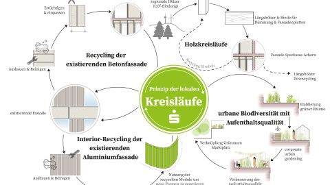 Das Materialkonzept basiert auf lokalen Kreisläufen und der verantwortungsvollen Nutzung von Ressourcen, um sowohl lokale Identität als auch globale Verantwortung zu verkörpern. Das Gebäude steht somit für Vertrauen, Werte und eine nachhaltige Zukunftsperspektive.