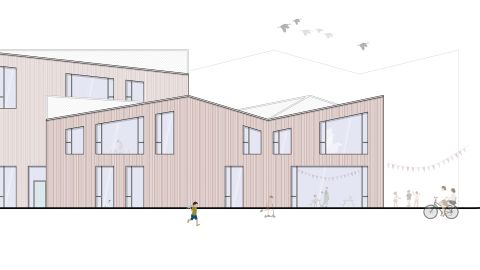Die Platzierung der Gebäude fördert die Interaktion zwischen Innenhöfen und Außenräumen. Der Campus wird ein multifunktionaler Ort mit Sportfeldern, Sitzbereichen und einem Lesegarten, der auch außerschulischen Aktivitäten offensteht. Die Gestaltung der Dächer und Materialien sorgt für eine harmonische Integration in die Umgebung und schafft eine lernfreundliche Atmosphäre. Ziel ist es, zukunftsfähige und anpassungsfähige Strukturen zu schaffen, die den Bedürfnissen der Gemeinde gerecht werden.